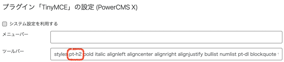 PowerCMS Xのリッチテキストエディタ(TinyMCE)にはプラグインの機能があり、カスタムボタンを追加することができます。