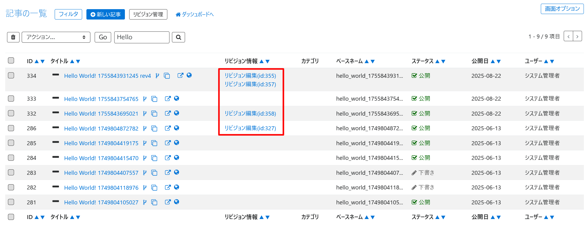 管理画面の記事(オブジェクト)一覧に手動で作成されたリビジョンへの編集リンクを追加する方法をご紹介します。